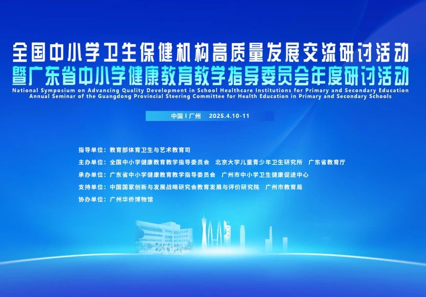 2025年4月10至11日,“全國中小學(xué)衛(wèi)生保健機(jī)構(gòu)高質(zhì)量發(fā)展交流研討活動(dòng)暨廣東省中小學(xué)健康教育教學(xué)指導(dǎo)委員會(huì)年度研討活動(dòng)”在廣州成功舉辦?;顒?dòng)由教育部體育衛(wèi)生與藝術(shù)教育司指導(dǎo),全國中小學(xué)健康教育教學(xué)